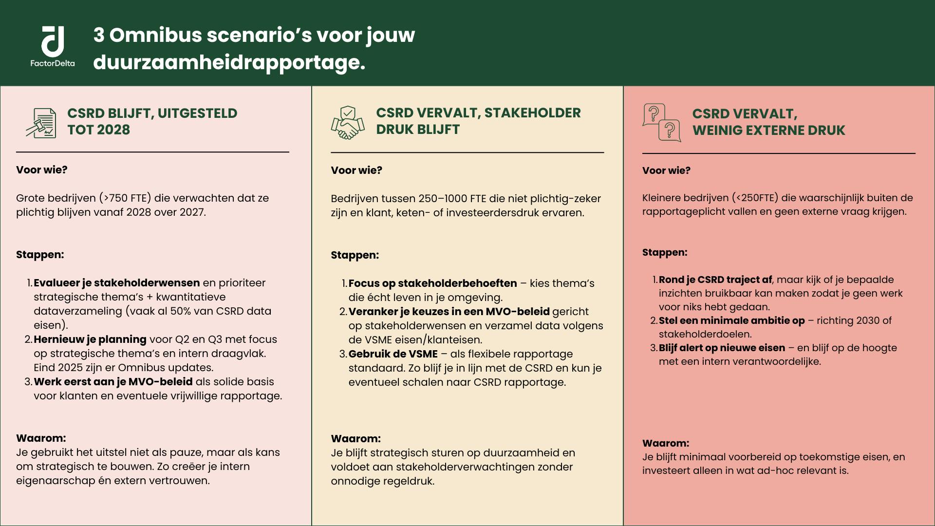 Overzicht: 3 Omnibus rapportage scenario's voor jouw duurzaamheidsrapportage.
